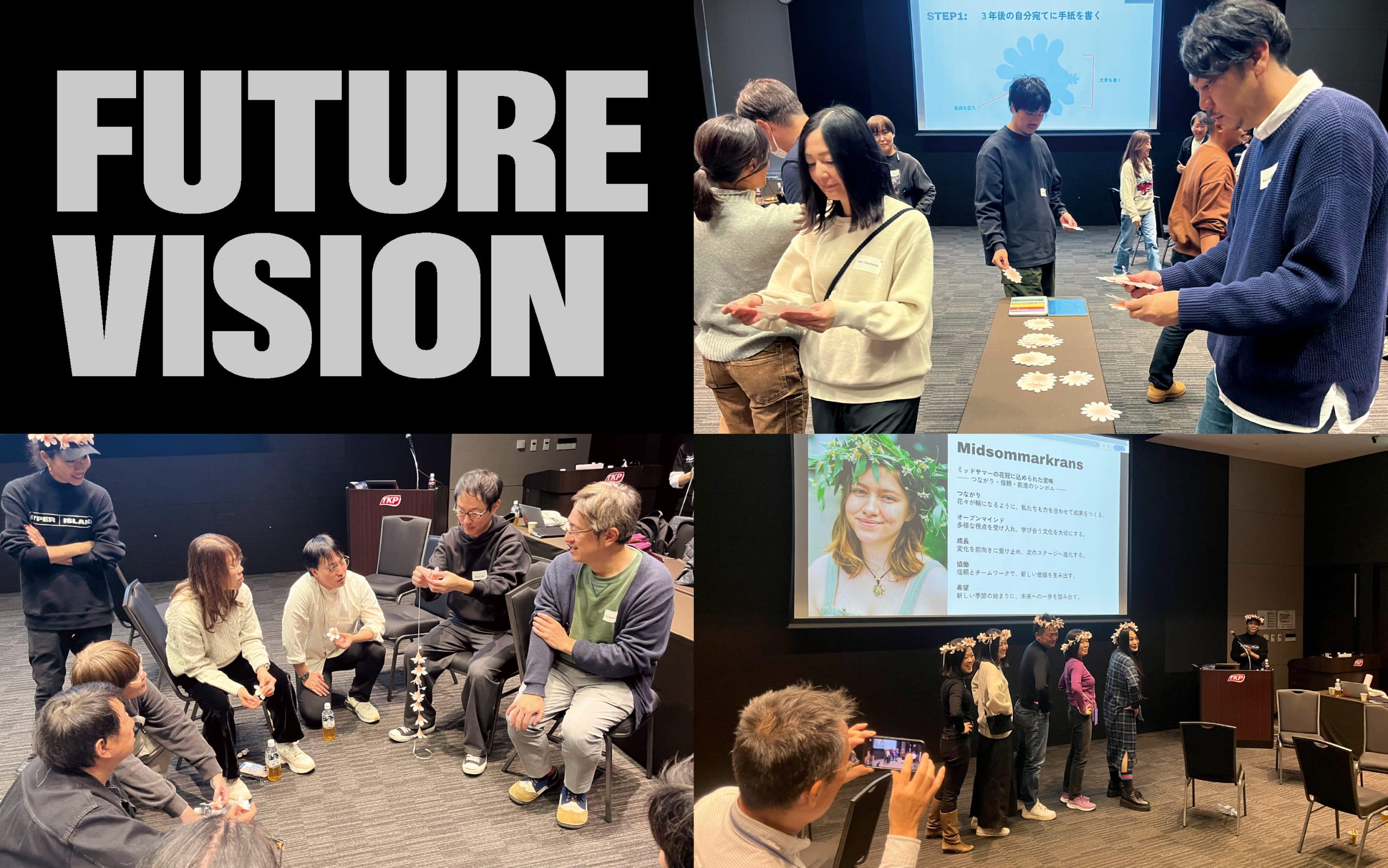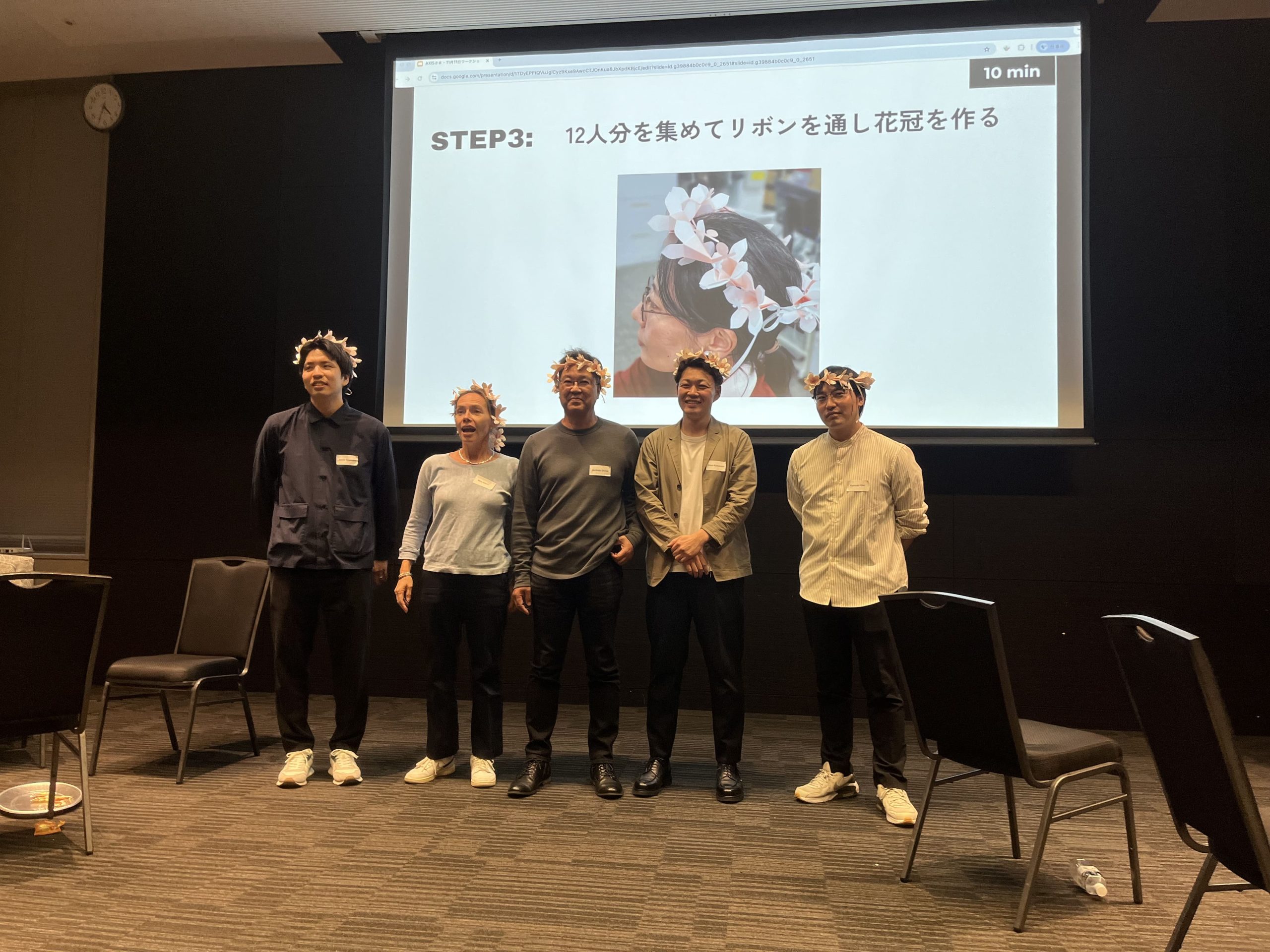 未来の自分自身に向けたメッセージを言語化し、それをもとに花冠を制作するワークを行いました。北欧のミッドサマーから着想を得たこのアクティビティでは、個人の想いをかたちにするプロセスを通じて、これからの組織のあり方や自身の関わり方について思考を深める機会が創出されました。