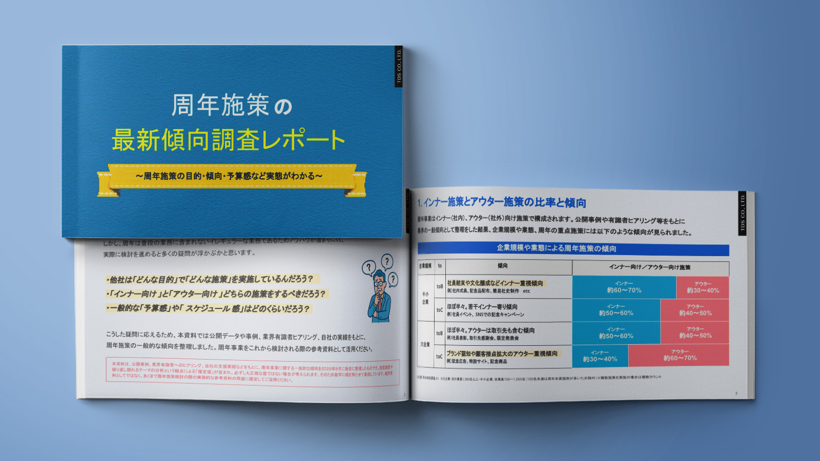周年時に実施する施策の目的・予算感・準備スケジュールなど、弊社が把握している直近の傾向を整理した参考レポートです。周年施策検討にお役立ていただけます。